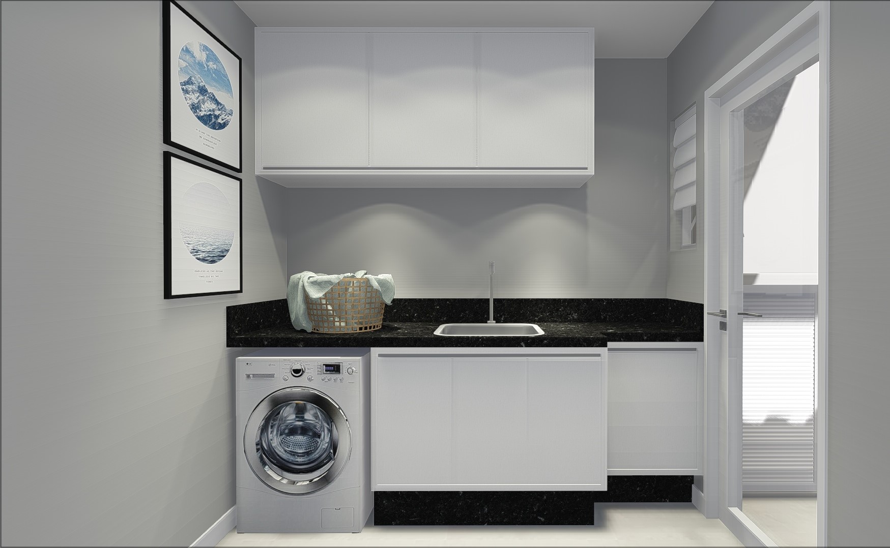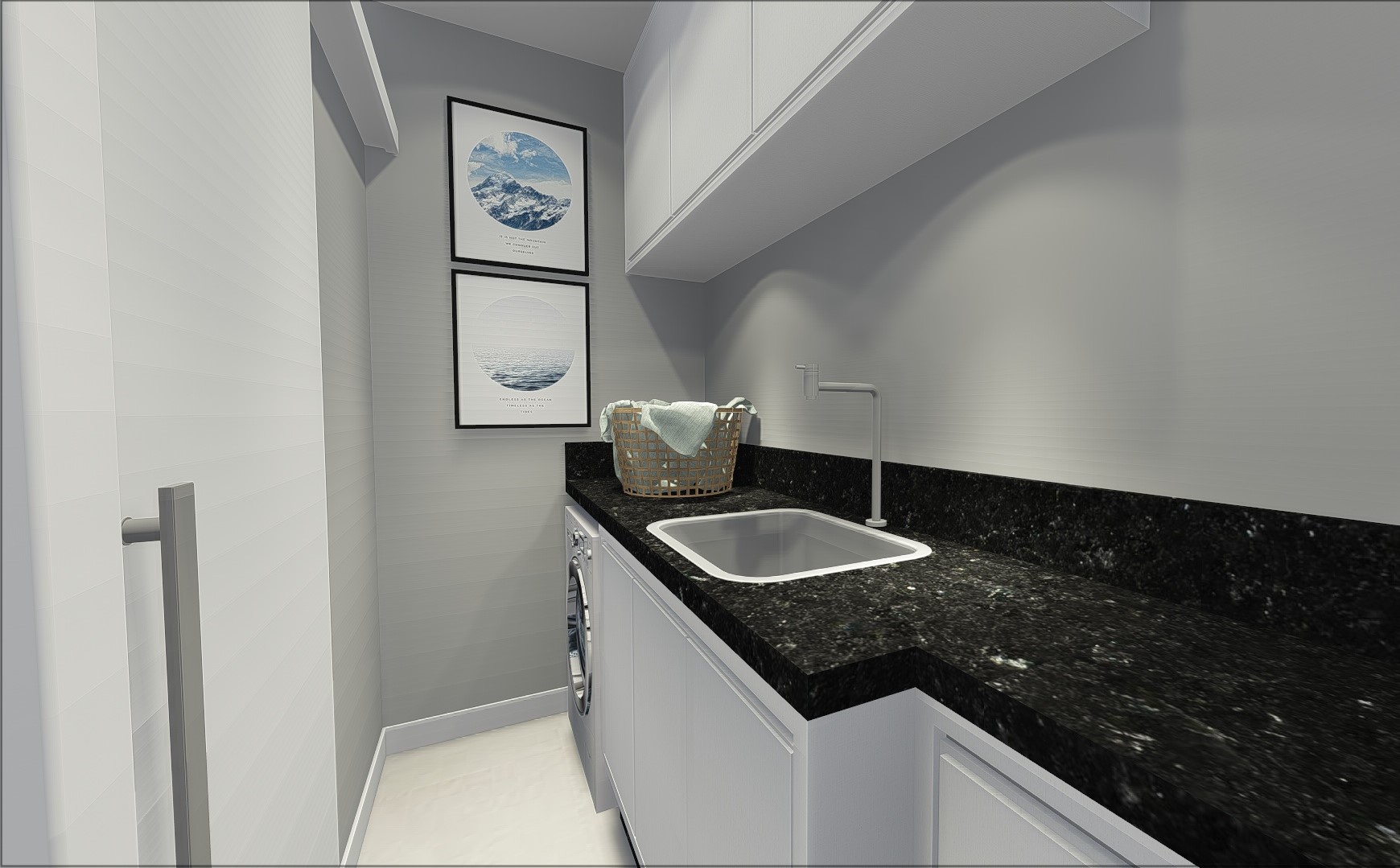 Área de serviço compacta e funcional com acesso separado à área externa.