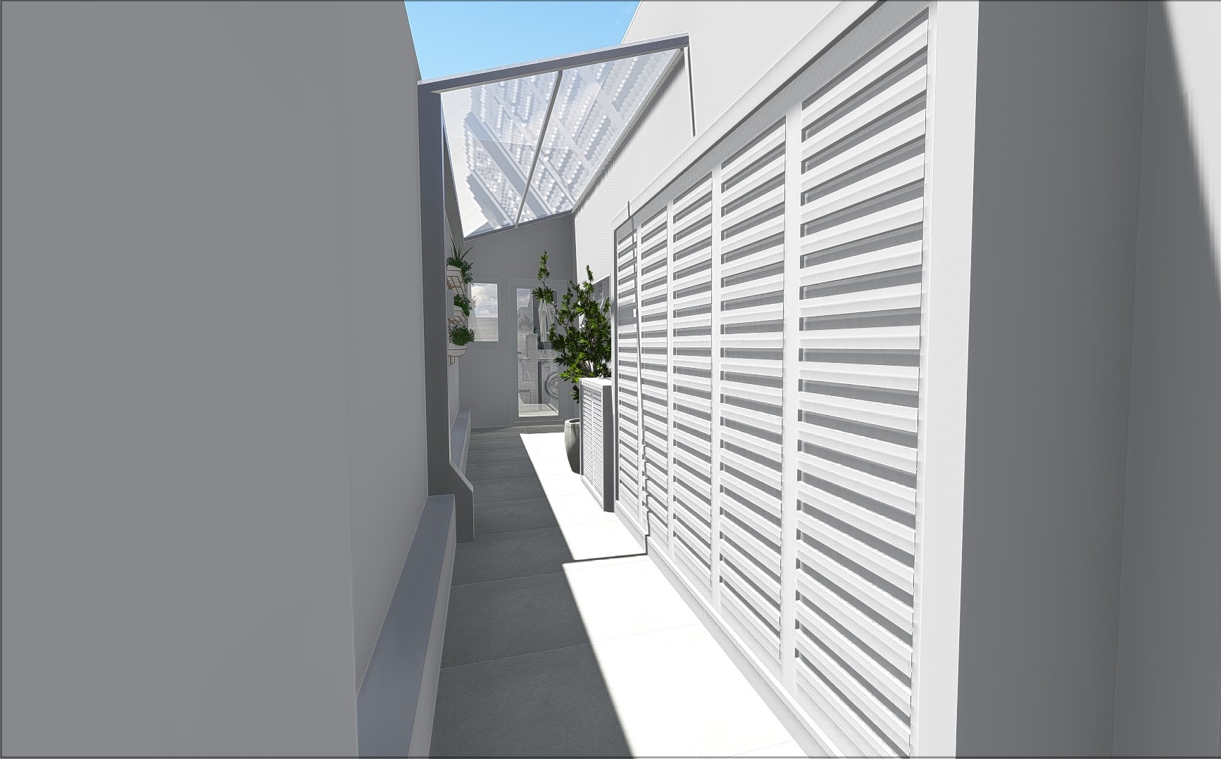 Na área externa contamos com uma horta vertical(que fica de frente para a janela da cozinha) e um depósito externo com porta veneziana para os materiais de jardinagem/piscina.