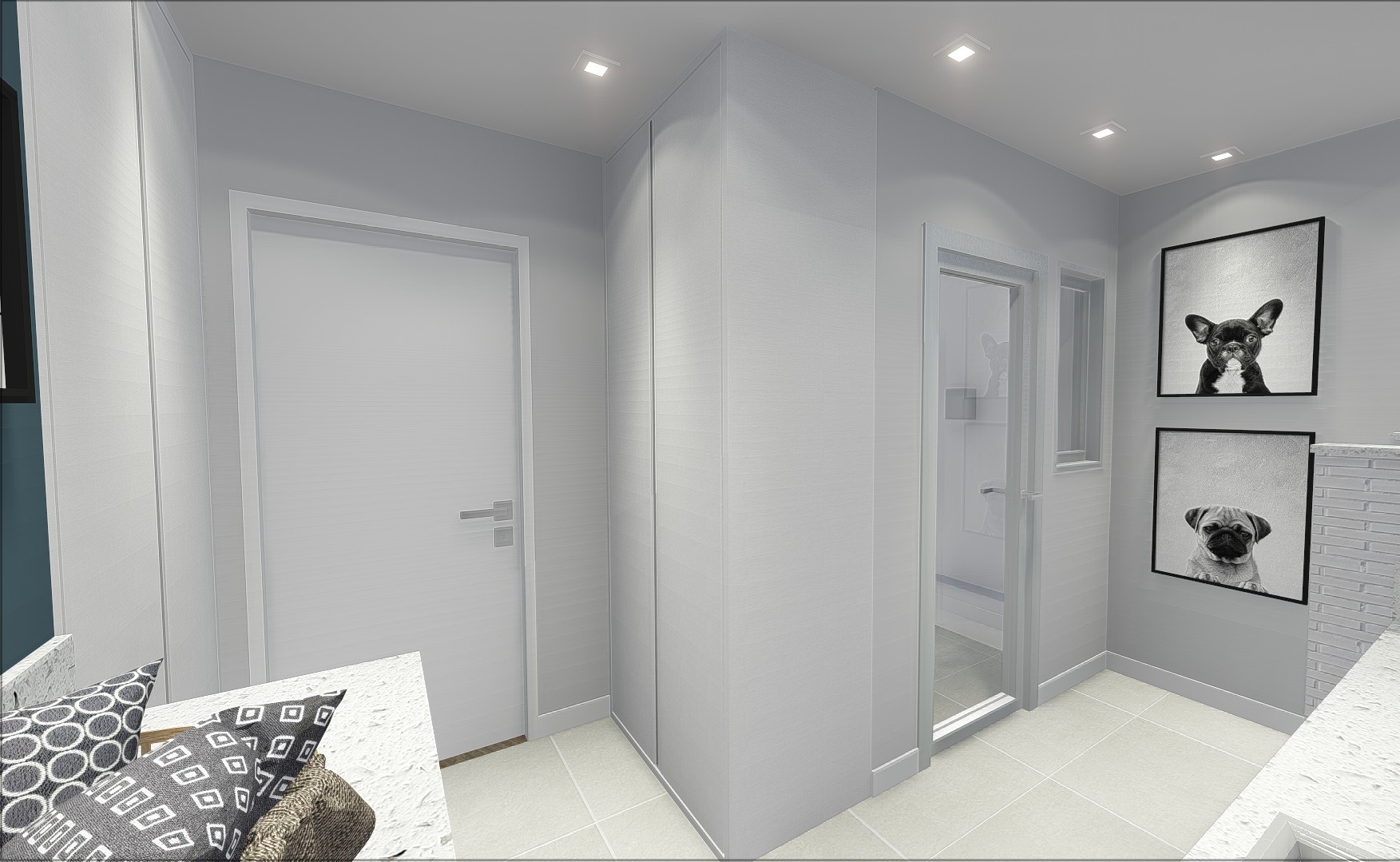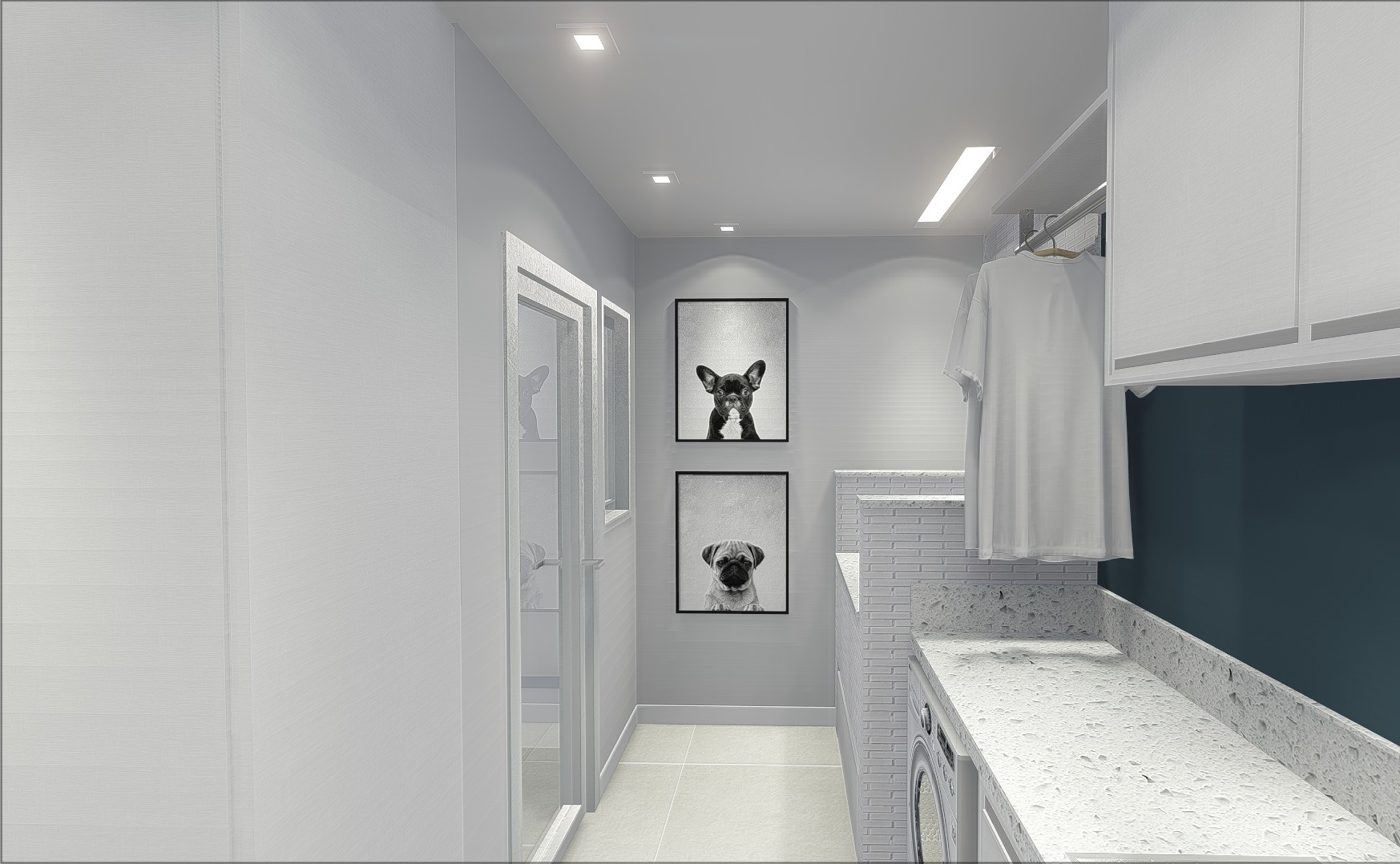O pedido especial da cliente era um espaço de banho para seus pets em casa, para isso criamos um área de lavatório ergonômico, na altura ideal para que ela consiga dar banho neles sem se abaixar.