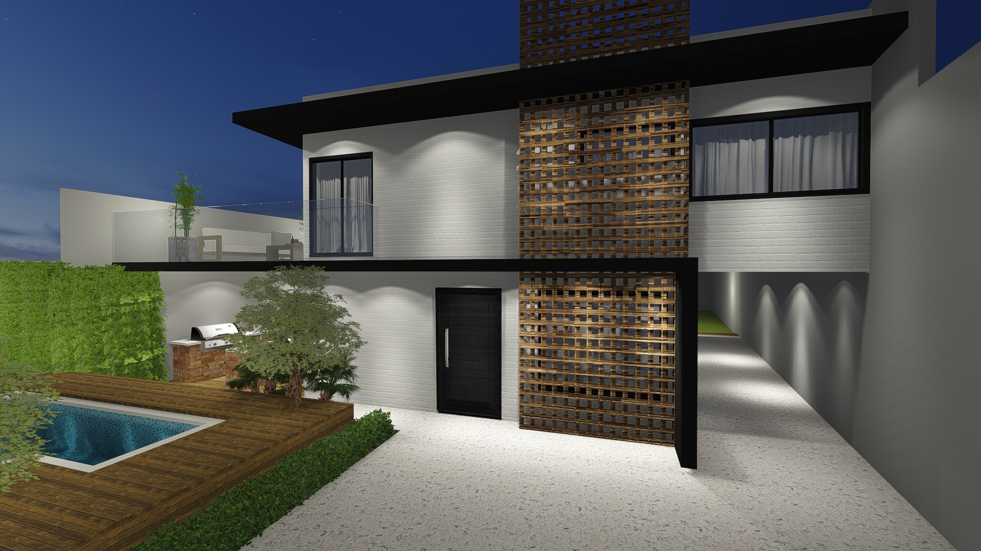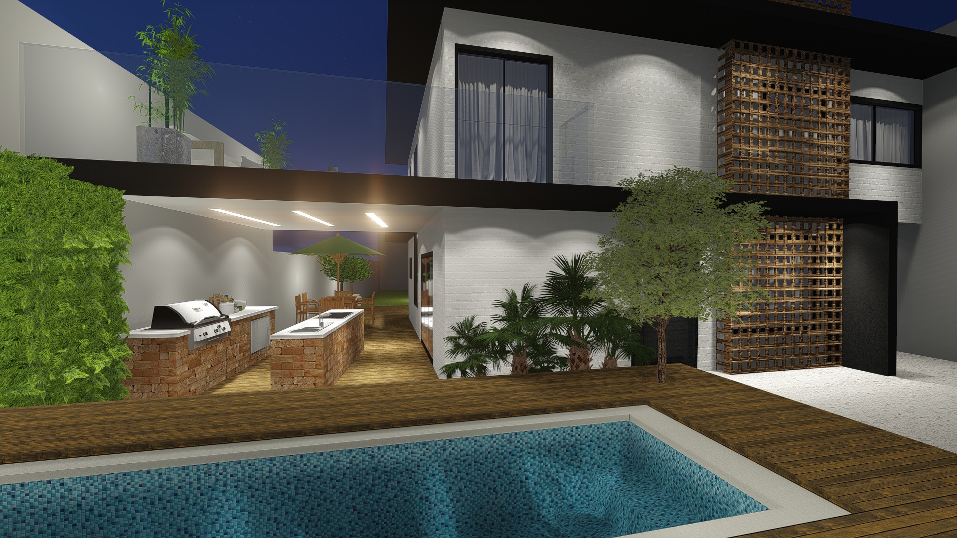 Reforma realizada para um casal sem filhos que gostaria de aproveitar melhor a área externa do seu terreno foi acrescentado um belo deck elevado com piscina, espaço para churrasqueira em área coberta e um jardim vertical para completar o visual natural da casa.